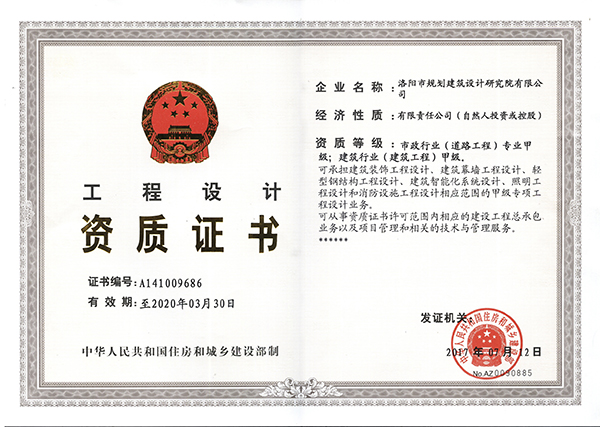 公司市政工程設計專業(yè)1993年經中華人民共和國建設部批準獲得市政工程設計乙級資質,幾十年來,公司市政工程設計專業(yè)為洛陽市和周邊地區(qū)的經濟建設作出了較大的貢獻。近年來,公司領導審時度勢推出了大市政的發(fā)展戰(zhàn)略,努力打造一流市政設計隊伍、創(chuàng)造一流品牌、實施一流的服務。在注重市政工程設計產品的質量和市政設計業(yè)務發(fā)展的同時,還注重專業(yè)人才梯隊建設,吸收了包括研究生在內的大批專業(yè)技術人才。并嚴格按照ISO9001《質量管理體系》要求狠抓市政工程設計產品質量,市政工程設計成果連續(xù)多年獲省級獎項,為河南省特別是洛陽的城市建設和經濟發(fā)展作出了突出的貢獻。