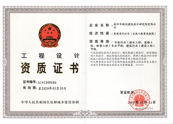 4月18日,住建部發(fā)布第52號公告《住房城鄉(xiāng)建設(shè)部關(guān)于核準(zhǔn)2018年度第三批建設(shè)工程企業(yè)資質(zhì)資格名單的公告》,公司橋梁工程、排水工程設(shè)計資質(zhì)順利通過審查成功晉升為甲級資質(zhì),這是公司繼道路工程資質(zhì)升甲之后資質(zhì)升級增項工作的又一重大突破。